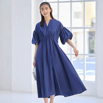 ボリュームブラウジングスリーブ&フレアワンピースドレス「U1487」