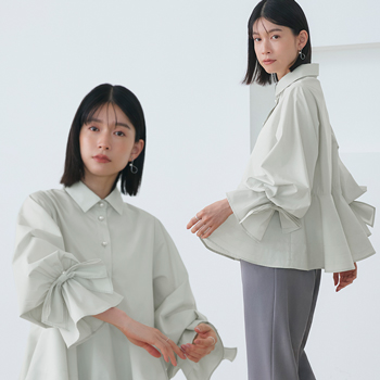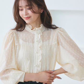 オーガンジースリーブフロントフリルブラウス「T1490」 -
