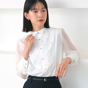 オーガンジーレースデザイントップスブラウス「T970」 -