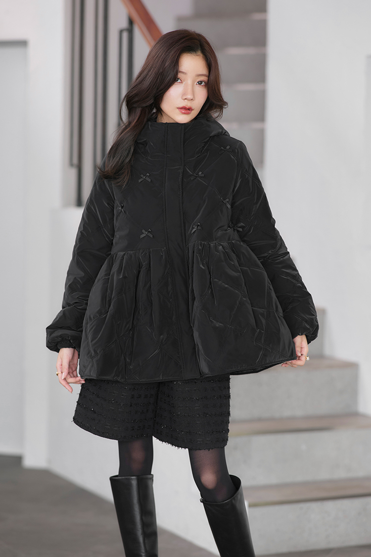 袖口や裾を絞り、シルエットを自由に変えられるパテッドコート。ボリュームたっぷりのカラーはマフラーいらずの暖かさで小顔効果も抜群。前後差をつけた丁度良い丈感はパンツ、スカート問わず幅広いアイテムに合わせやすいです。水を弾きやすい撥水加工を施しています。