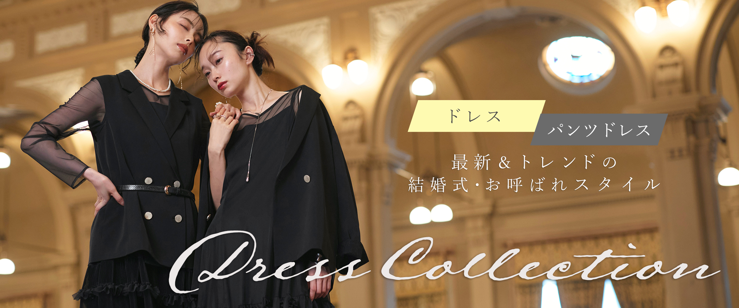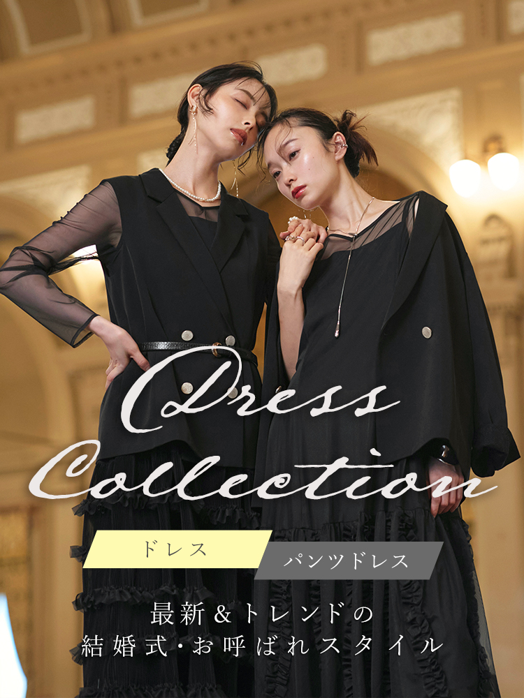 ふんわりとしたドットチュールのボリューム感とIラインシルエットが、大人かわいいを叶えるドレス。女性らしいリボンとチュールのデザインに、マニッシュな素材の組み合わせが甘くなりすぎないポイント。
