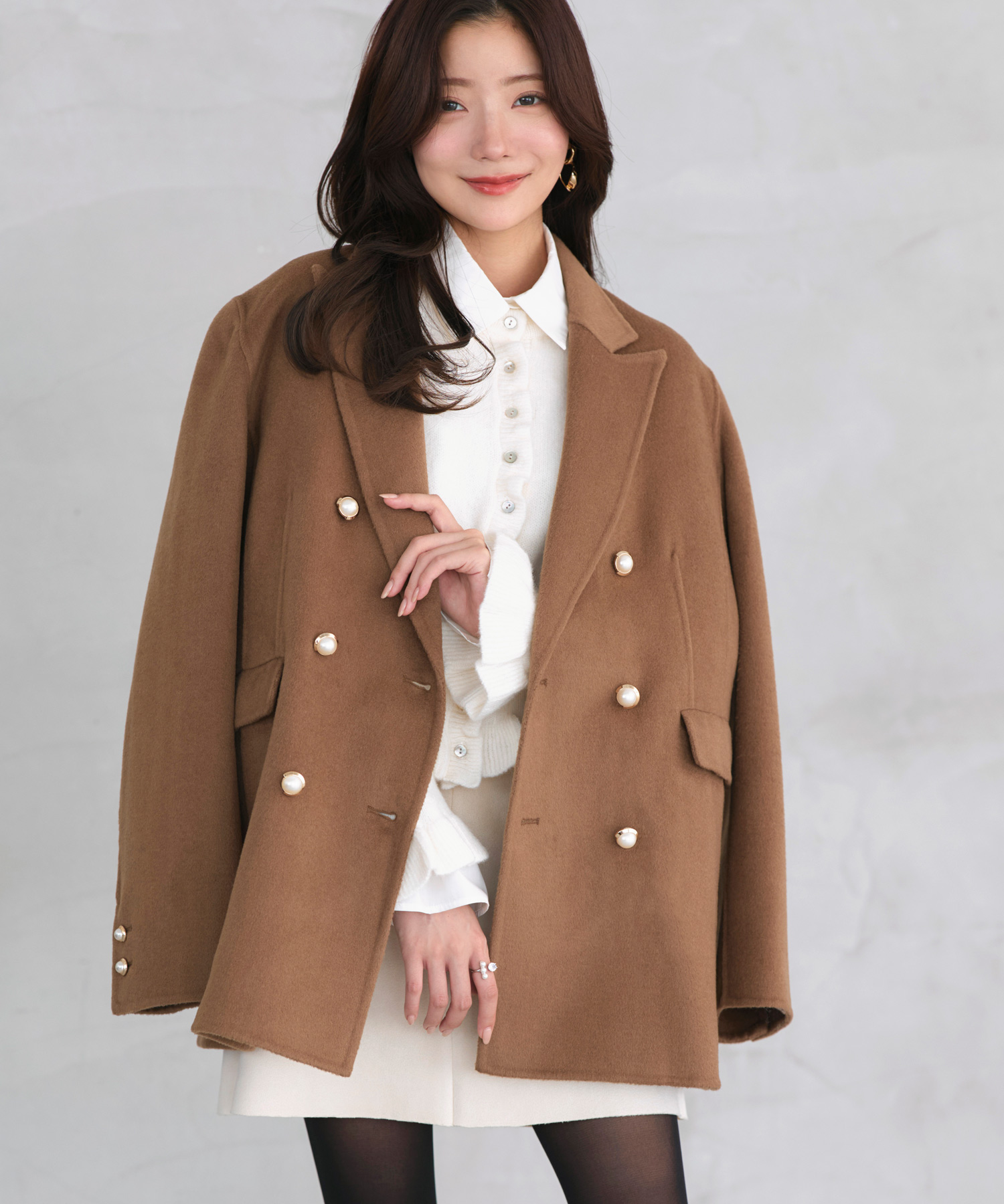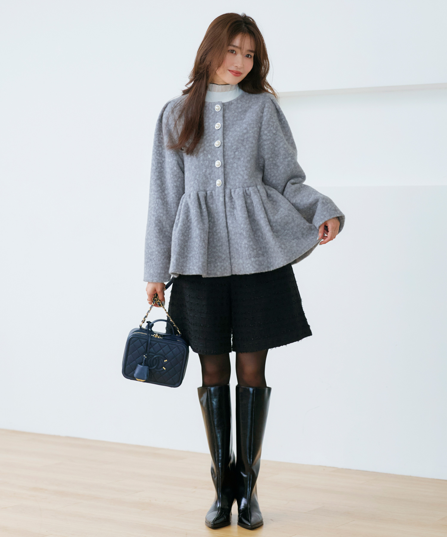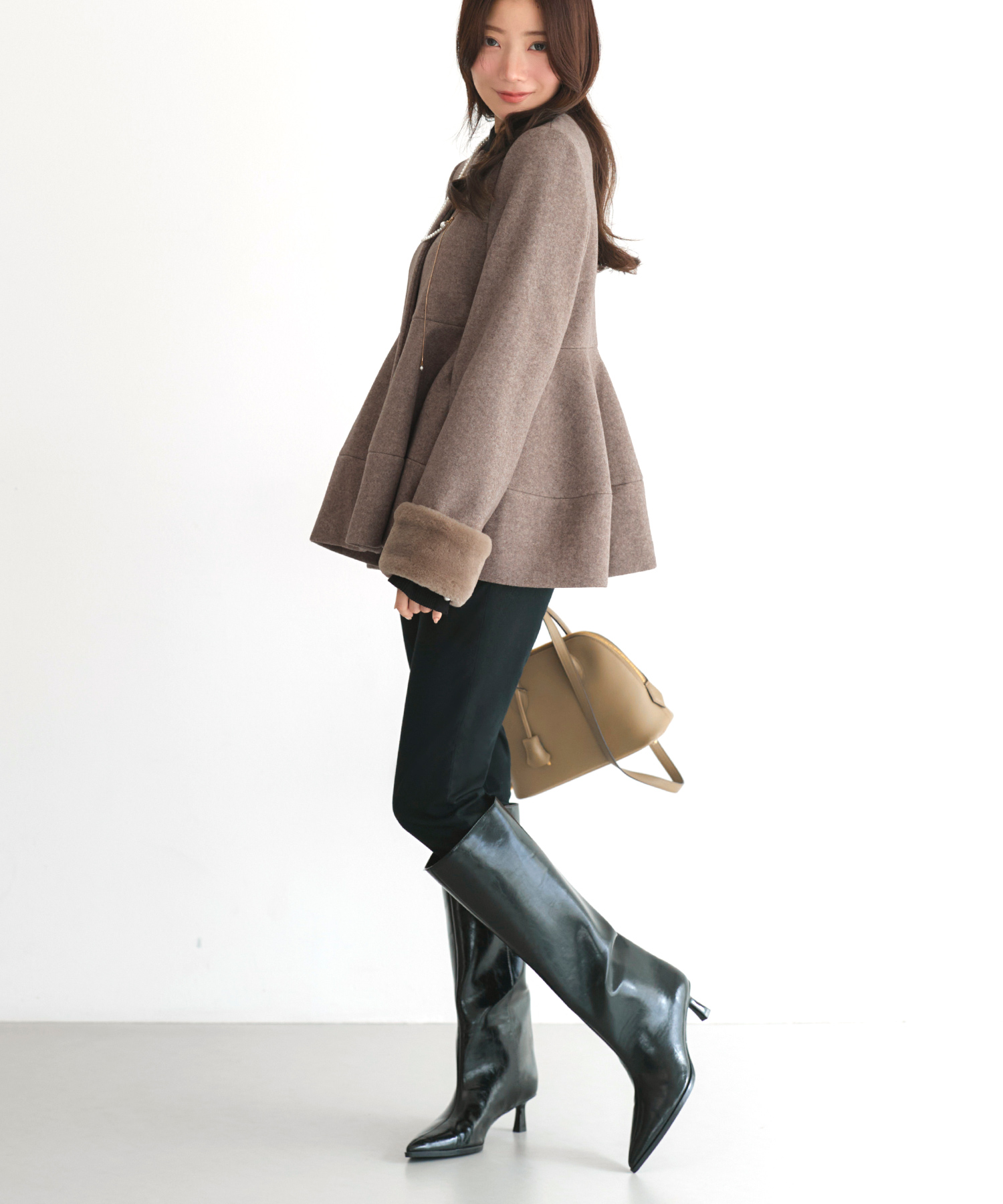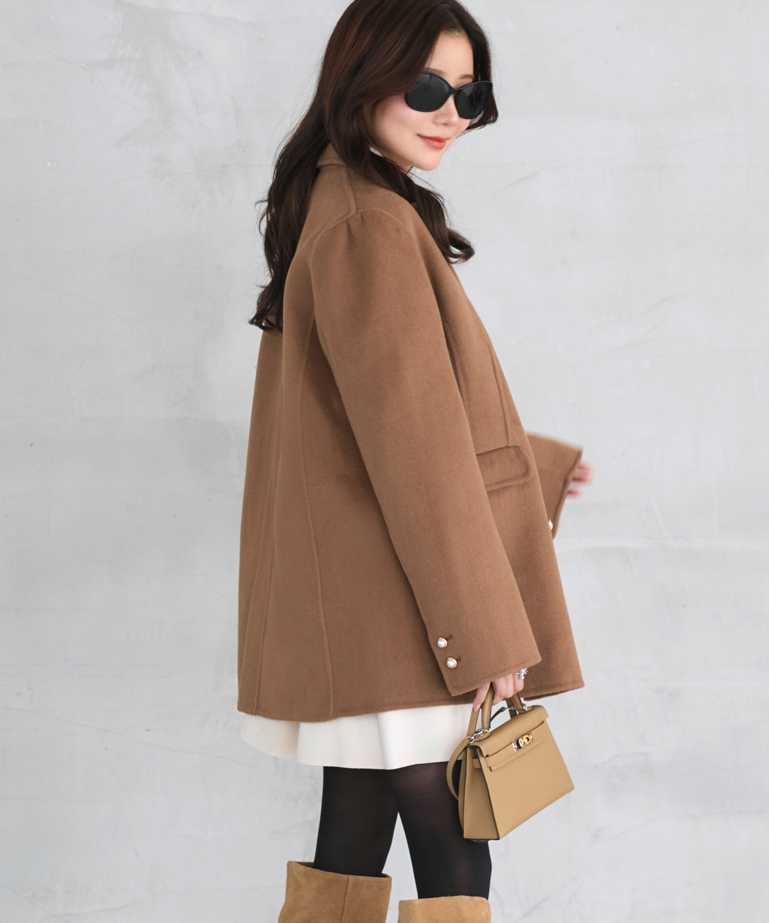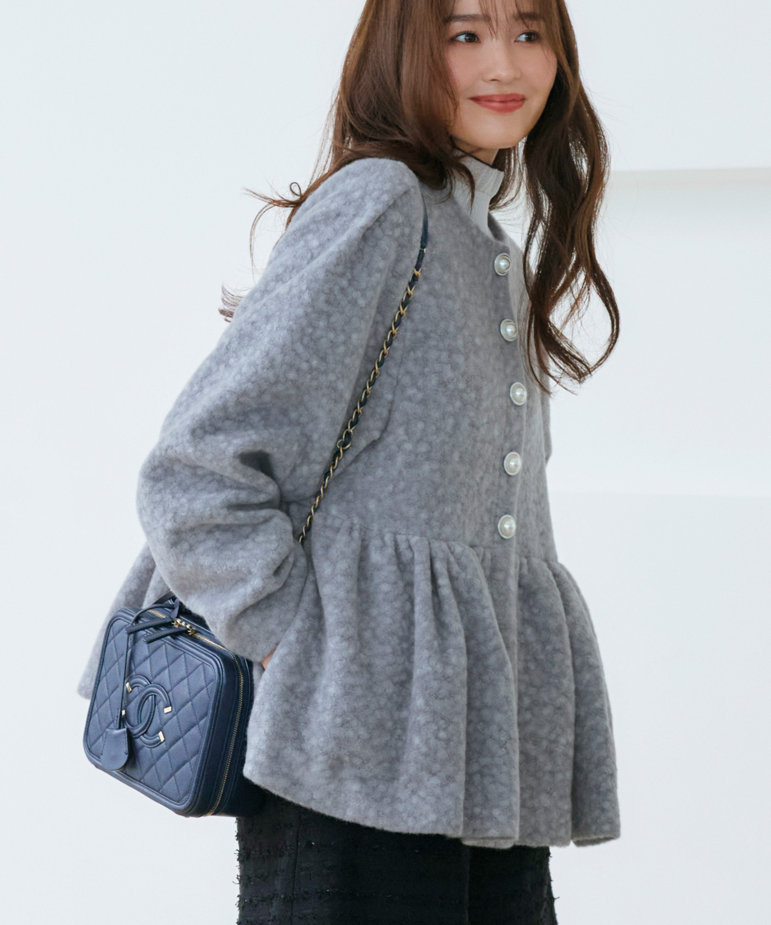 大人の女性に着てほしい甘すぎないデザインで今っぽいこなれ感もあわせもったアウターです。
