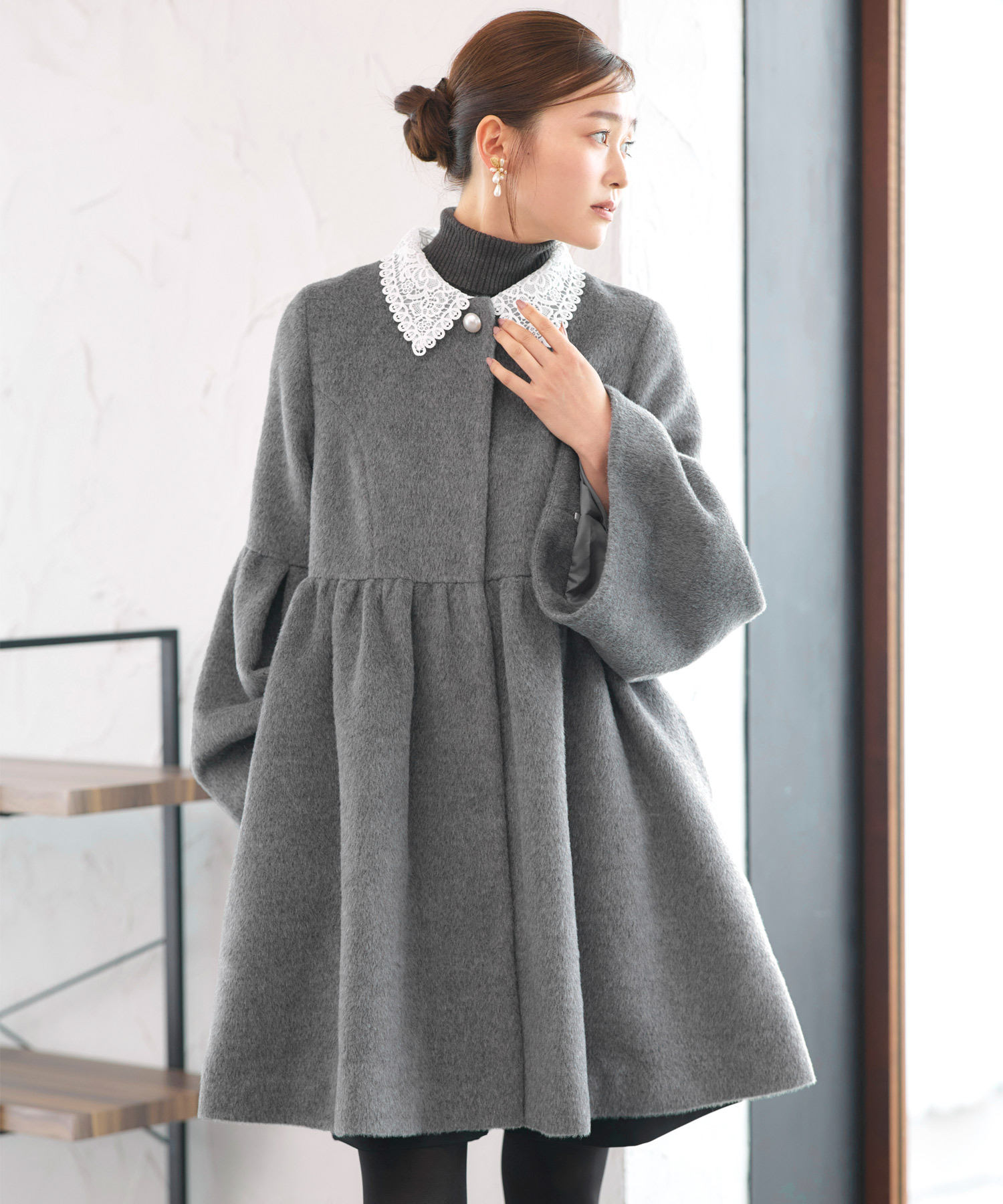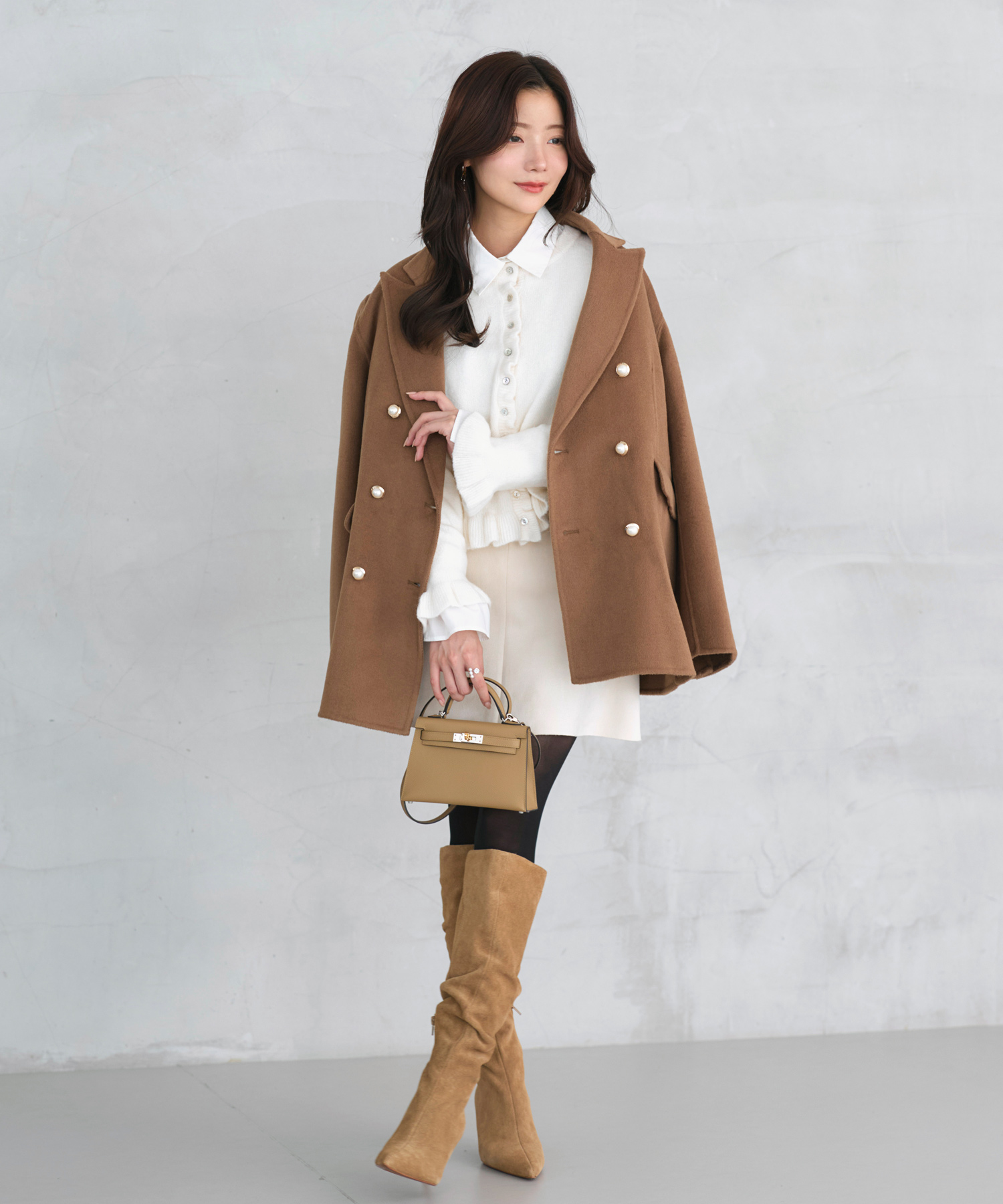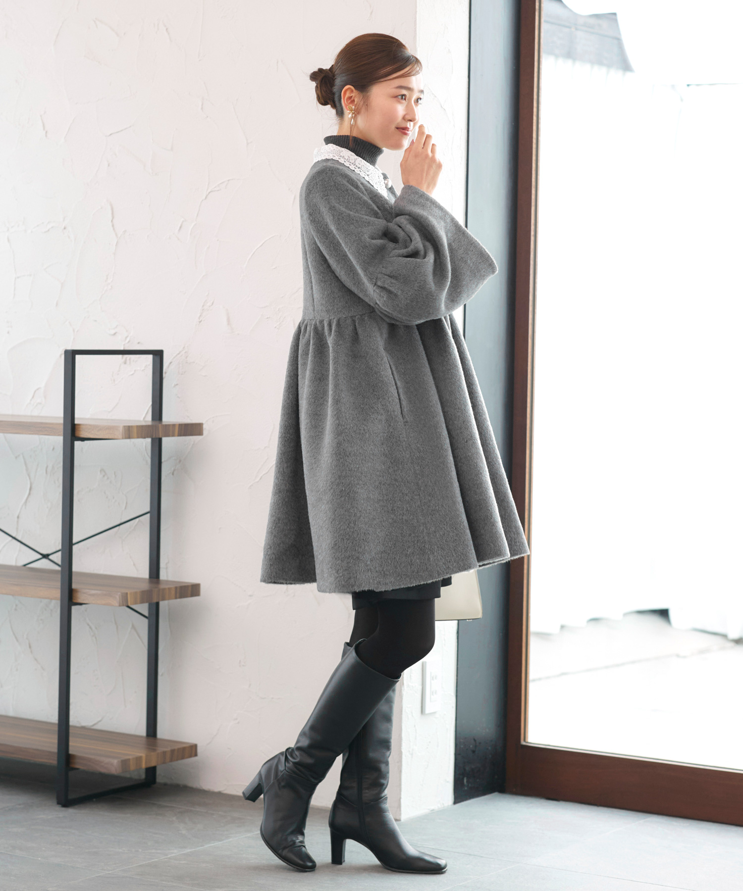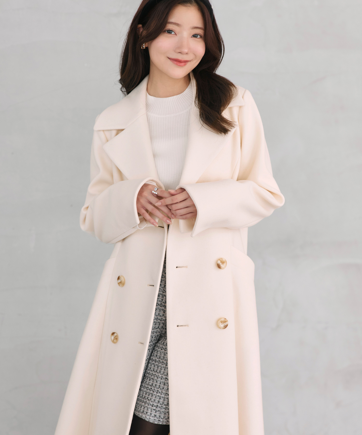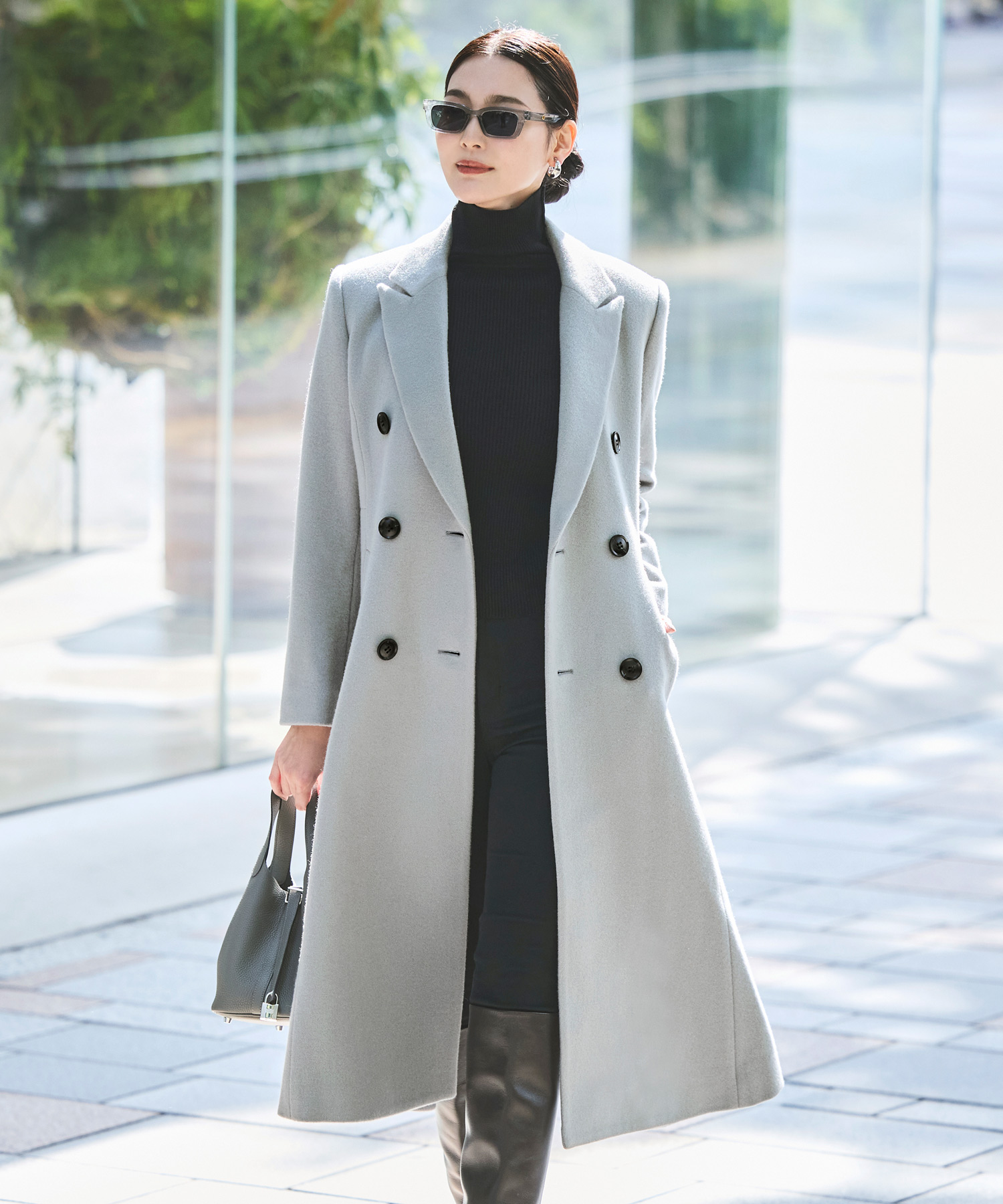 大人の女性に着てほしい甘すぎないデザインで今っぽいこなれ感もあわせもったアウターです。