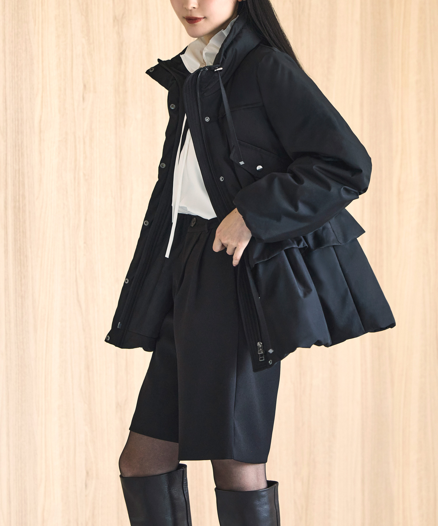 軽くてリアルダウンに引けを取らない暖かさです。ペプラムや異素材との組み合わせなどオシャレなデザインが目を惹くアイテムが勢揃い
