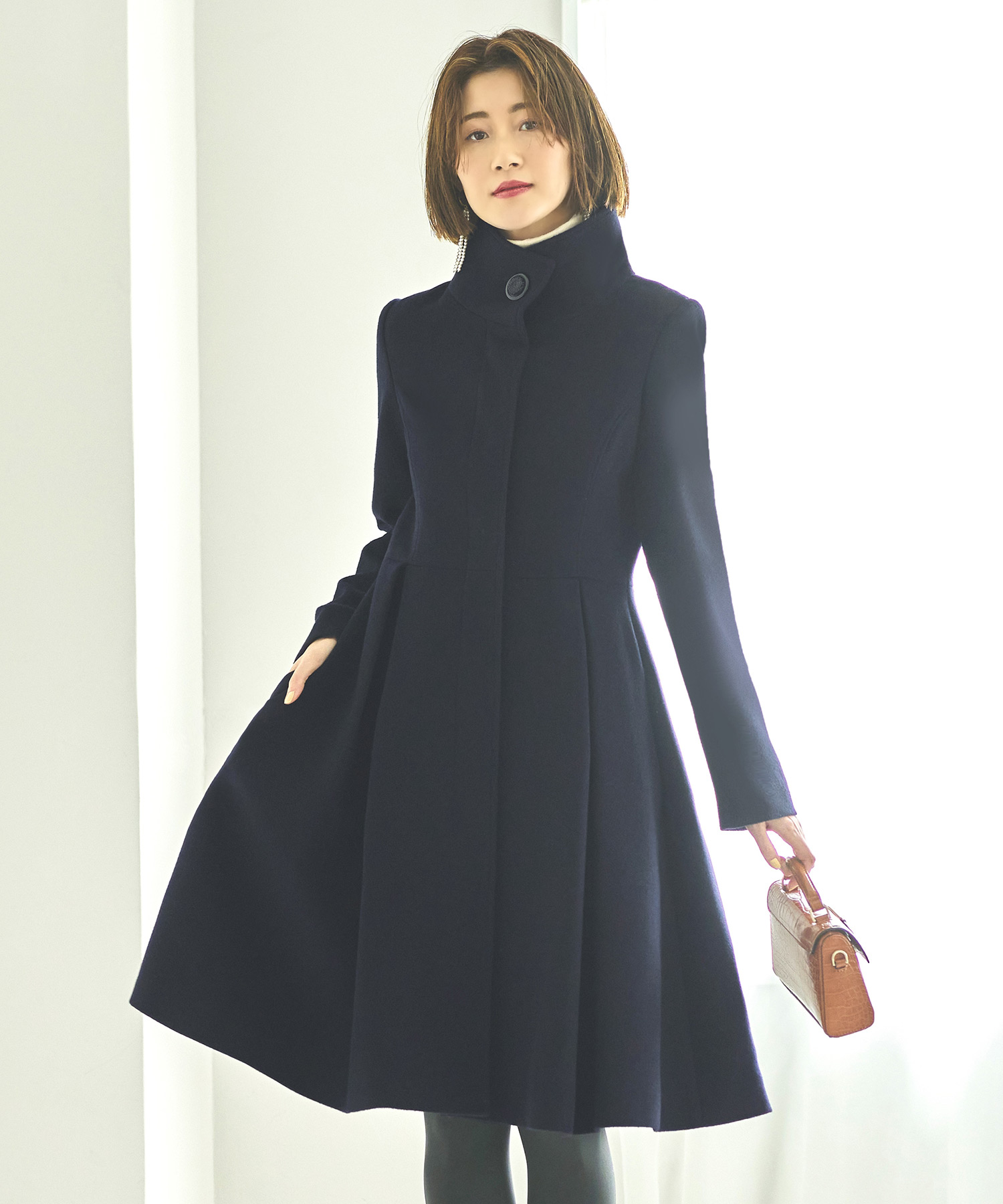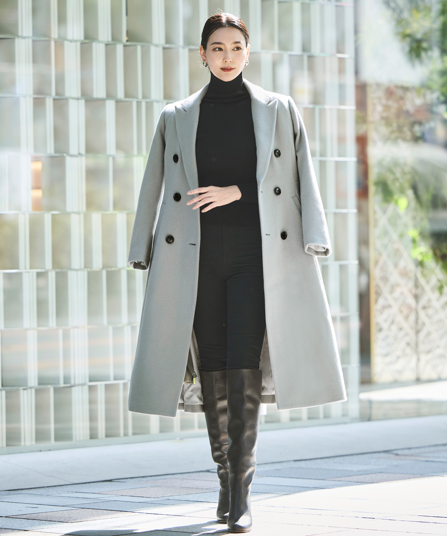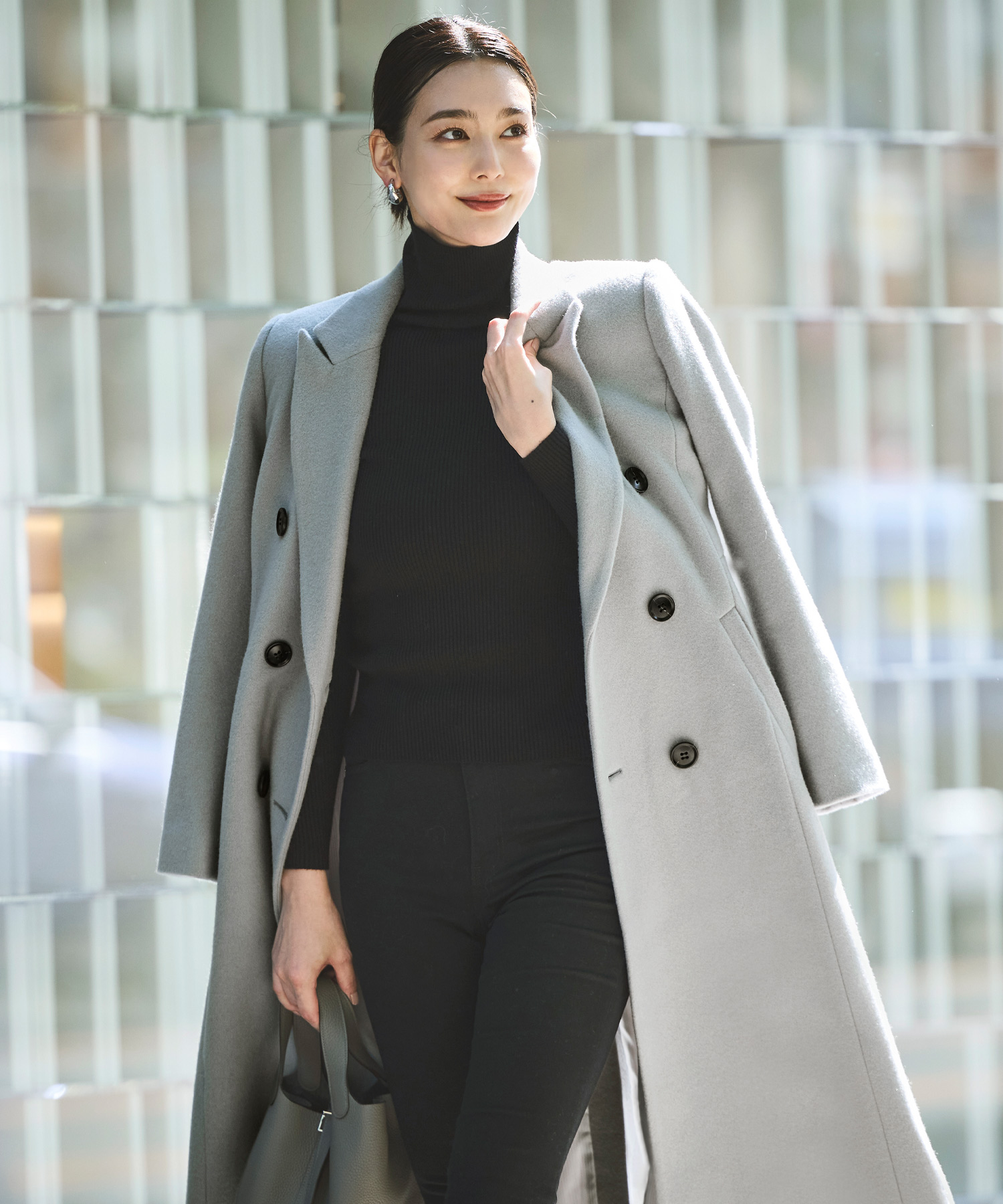 100%ウールを使用したコートは、保湿性が高く、伸縮性、弾力性にも優れていて、手触りも良く、シワになりにくいのが特徴です。