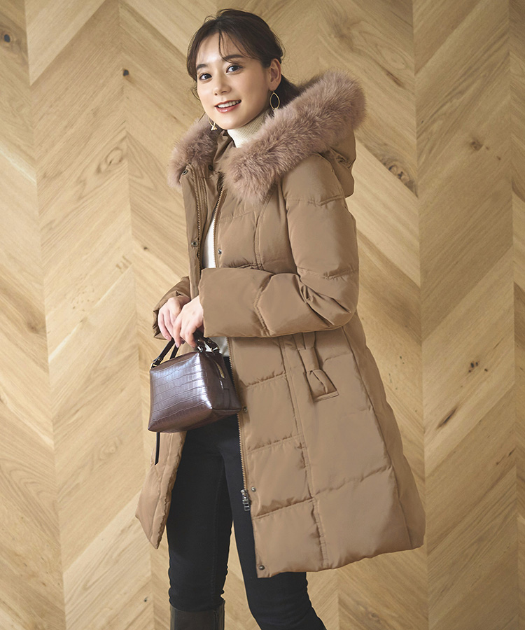 ファー付きのダウンで華やぎ度をUP。ふわふわのファーが見た目の可愛らしさと温かさを叶えてくれ、カジュアルになりがちなダウンコーデをレディライクに仕上げてくれます。