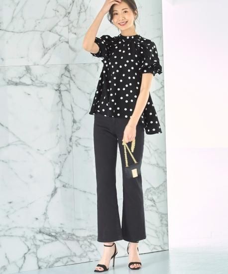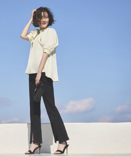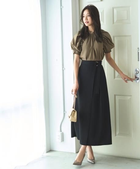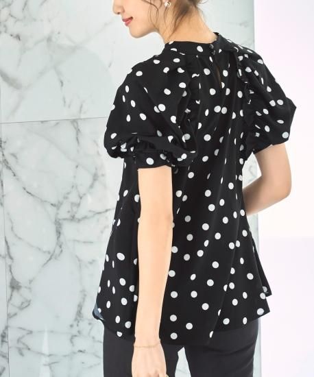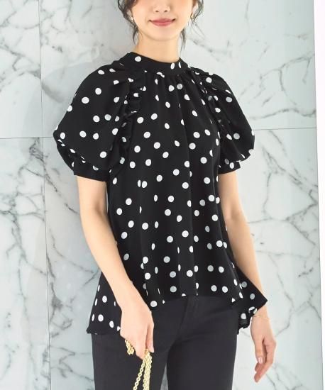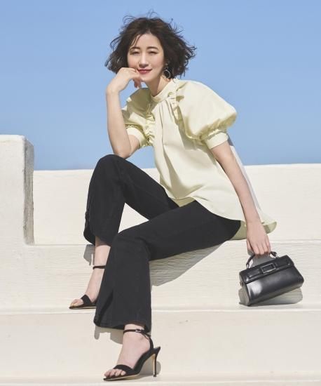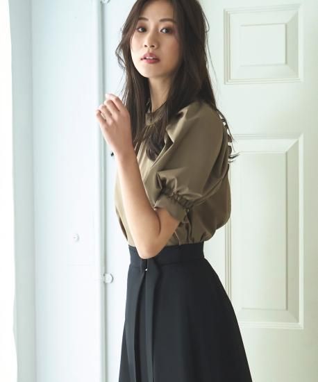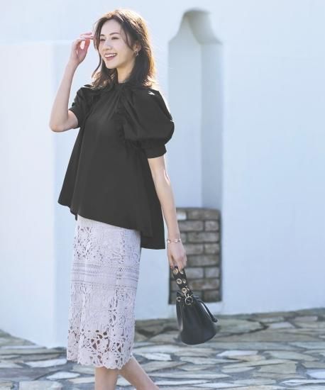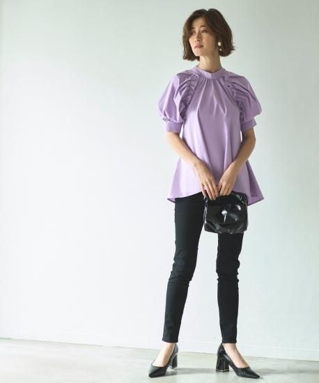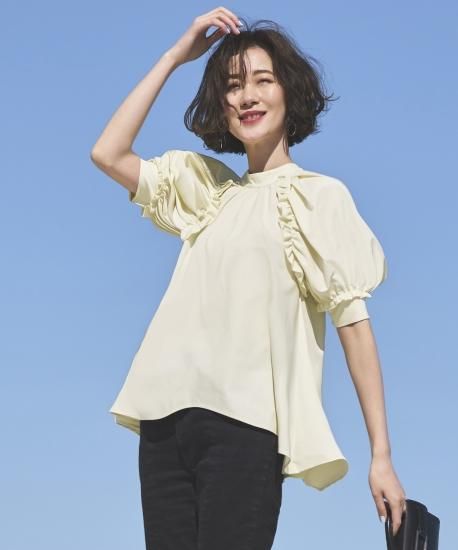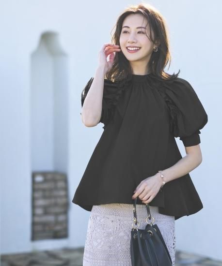 たっぷりとボリューム感のあるスリーブとドレープの効いた身頃が大人可愛いスタイルへと導いてくれる1枚。