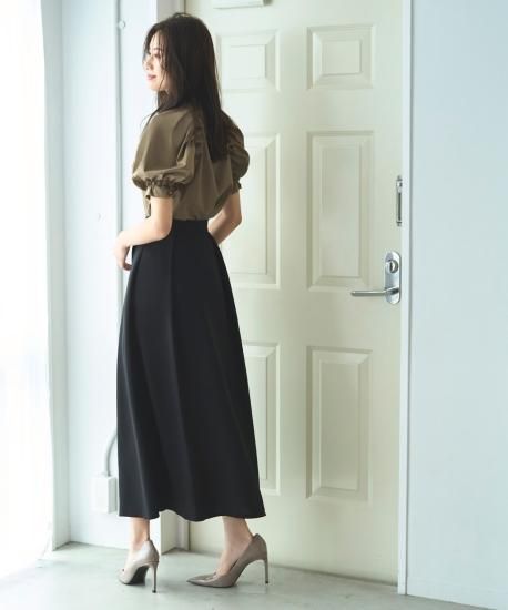 ボリューム感のある袖と、ドレープの効いたデザインが大人かわいいスタイルを叶えます。