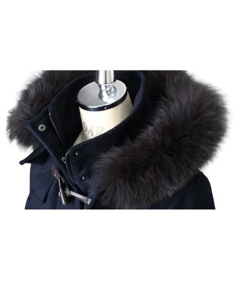 ◆伸縮性:なし ◆裏地:あり ◆開き具:身頃前開きファスナー+ドット釦 3セット+トグル釦 3個 ◆付属品 : フード、フォックスファー(取り外し可) ◆カラー:ブラック/ネイビー/ブラウン/モカ |