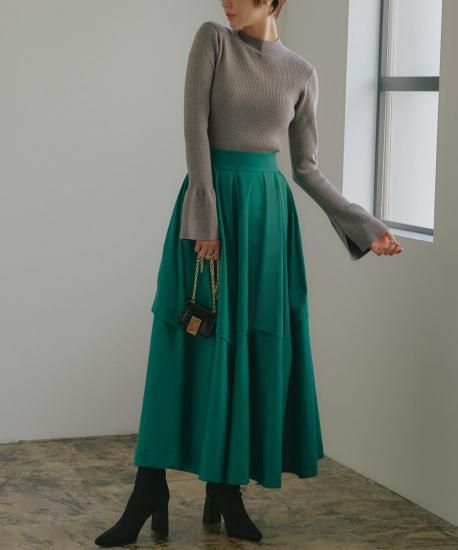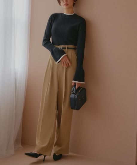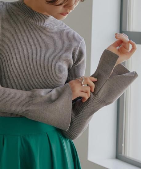 緩やかに広がるフレアスリーブが大人フェミニンなリブニット。