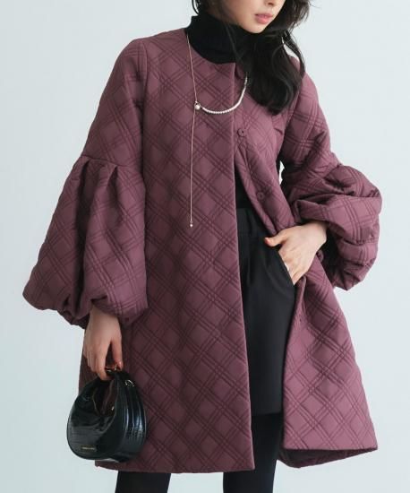ボリュームスリーブキルティングフレアコート