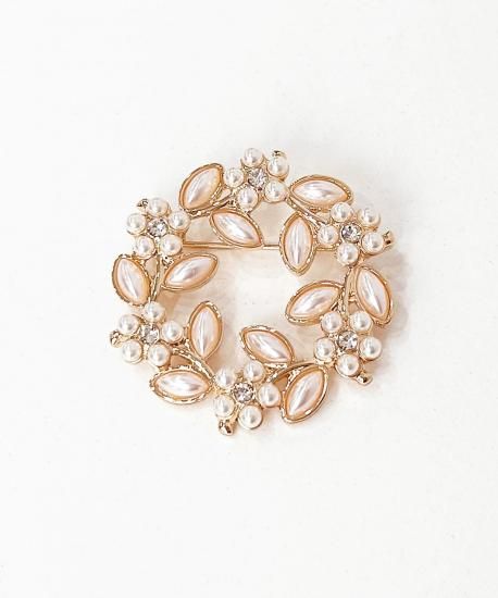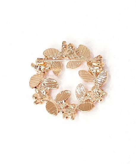フラワー&リーフをリース型にしたゴールドブローチ