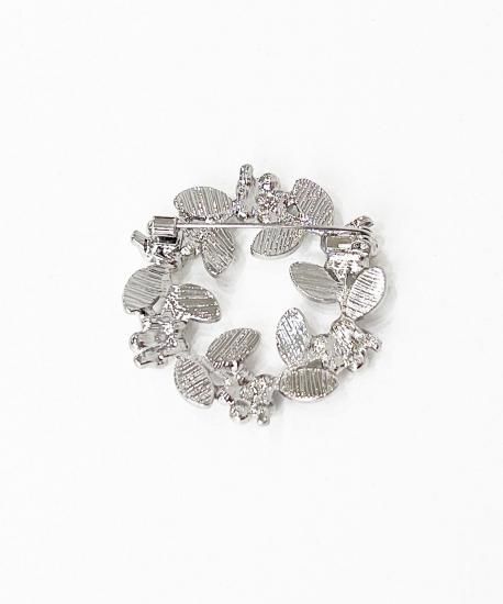 フラワー&リーフをリース型にしたシルバーブローチ