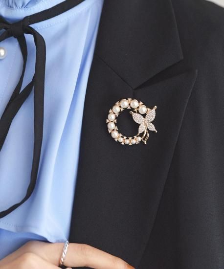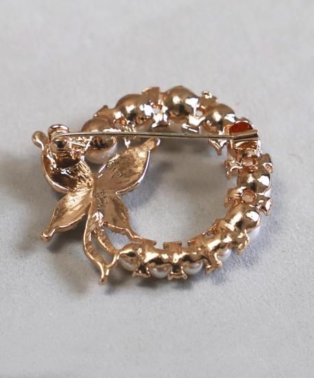 ビジューが煌めくバタフライとパールサークルのブローチ