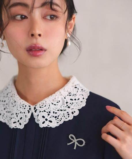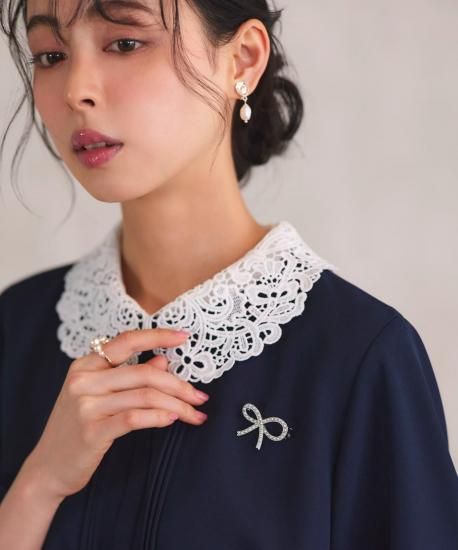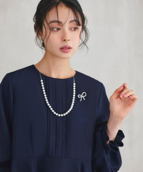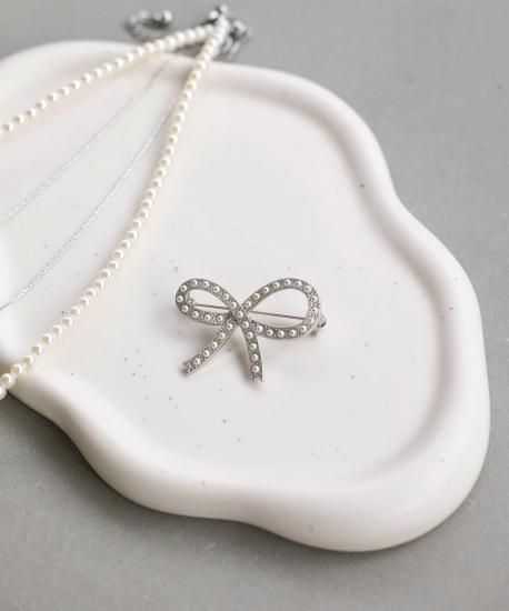 リボンモチーフにパールを配した上品で可愛らしいブローチ