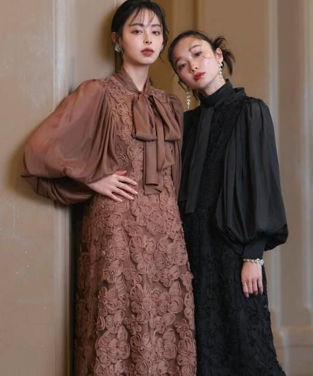 首元のリボンは巻き方次第で表情が変わり、エレガントな雰囲気を添えてくれます。