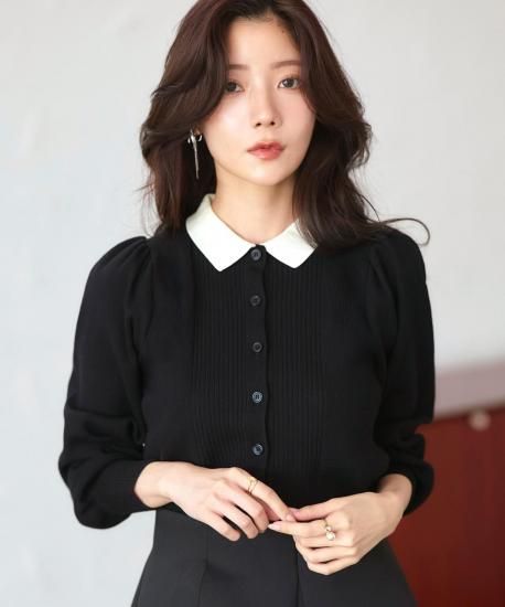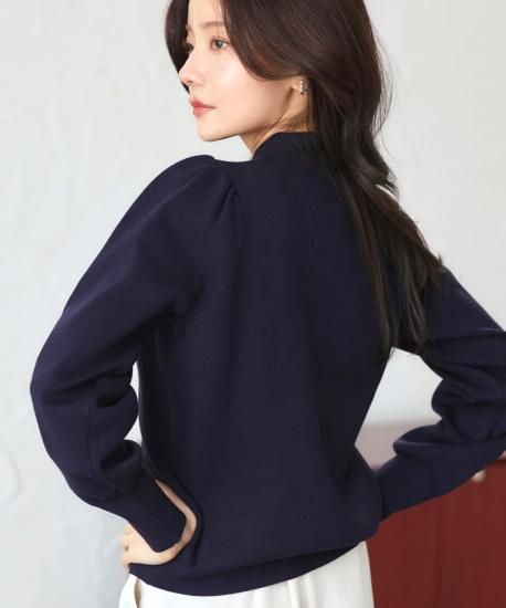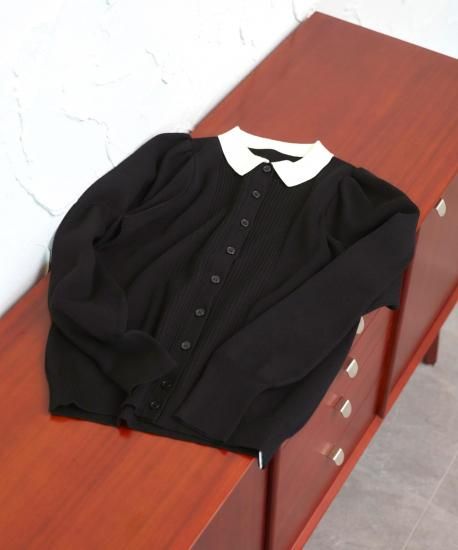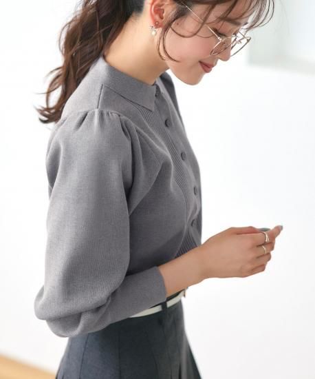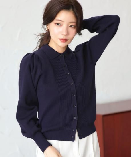 上品な衿とふんわりパフ袖をあしらったカーディガン。