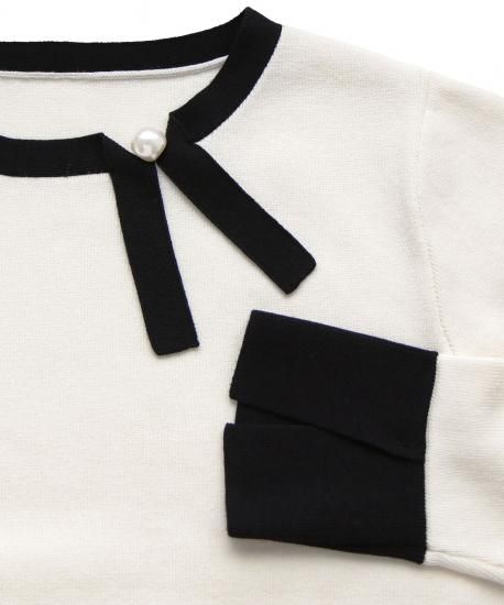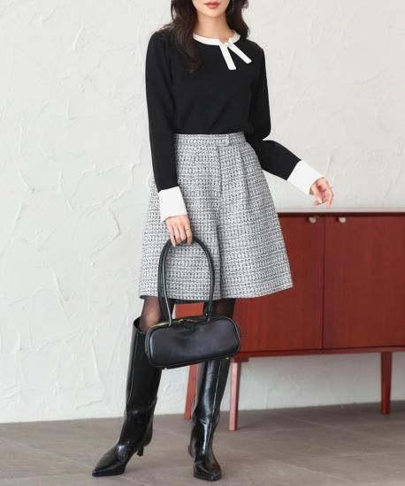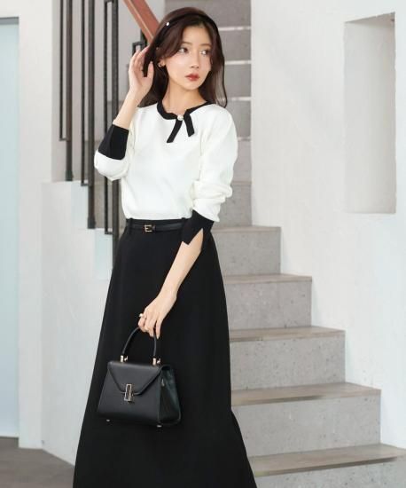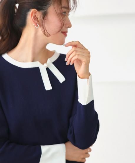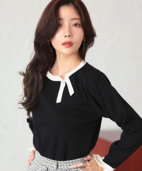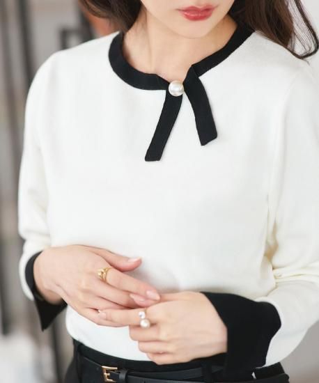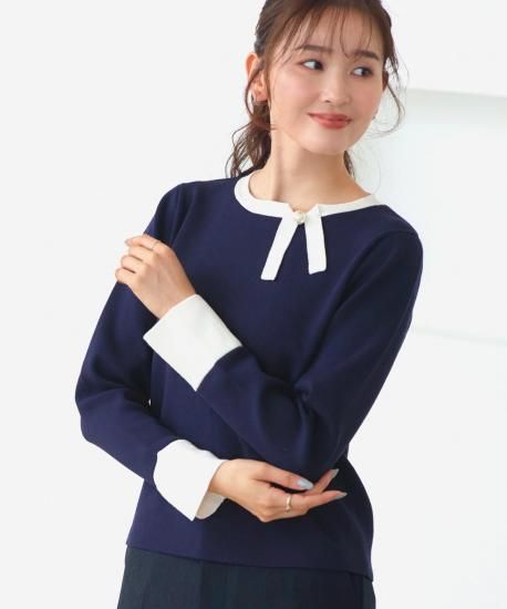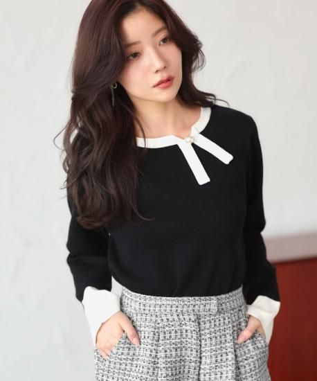 フェミニンなリボンとバイカラーで、顔まわりまで明るく上品に。
