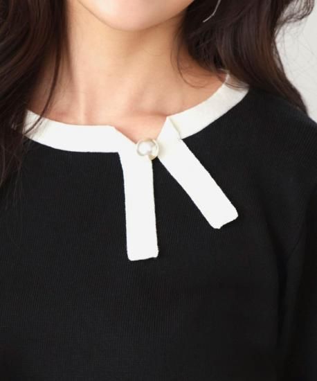 バイカラーの配色で顔まわりを明るく見せ、きちんと感のある印象に。
