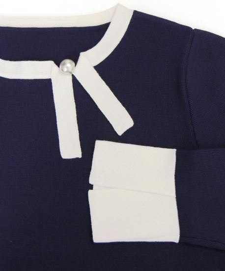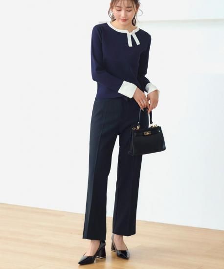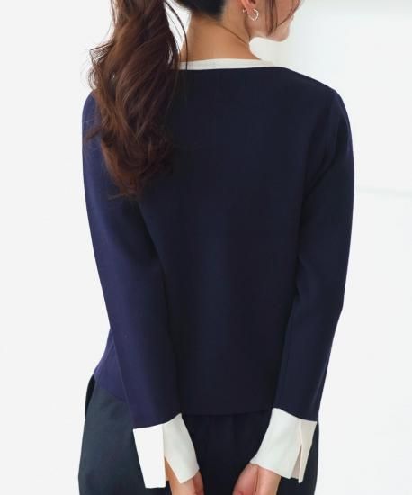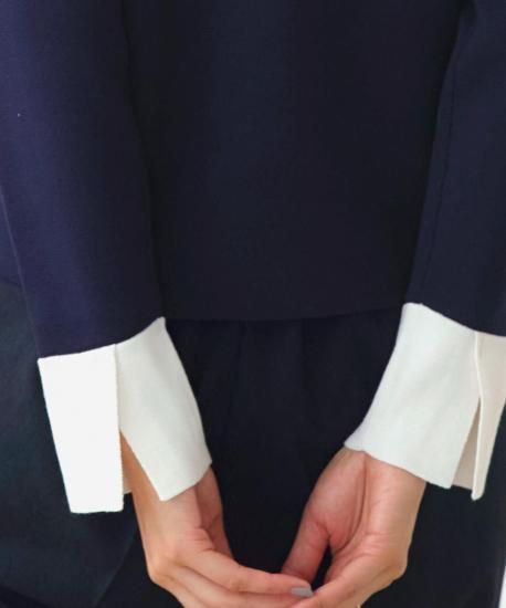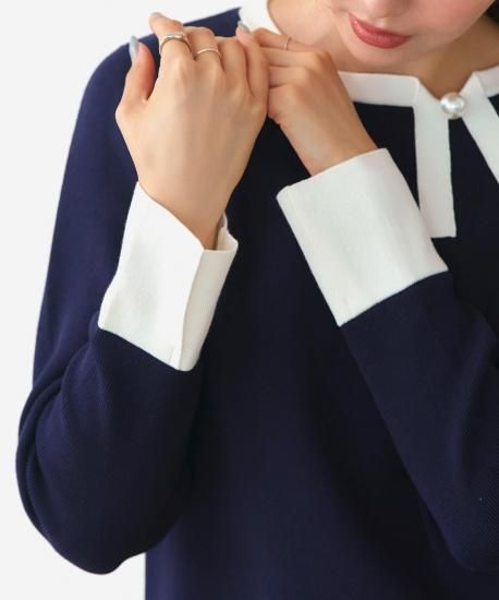 首回りと袖口のバイカラーがきちんと感をプラスし、上品なアクセントに。