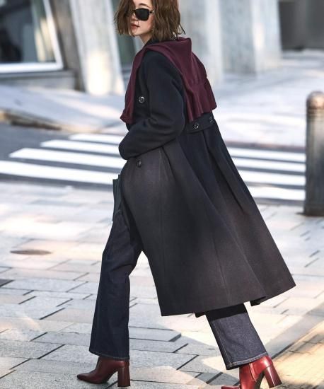 ブラックのボタンがアクセントになり、全体を引き締めてスタイリッシュに。