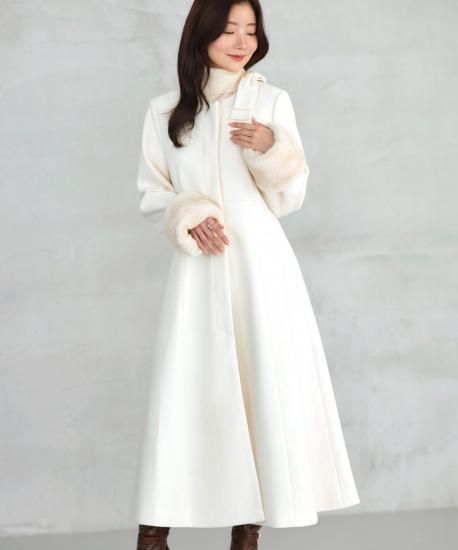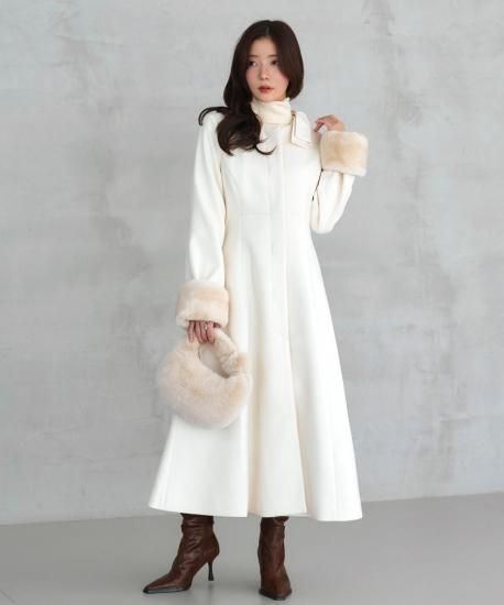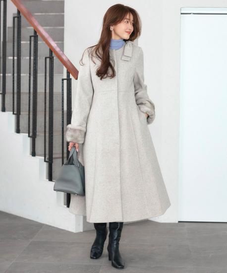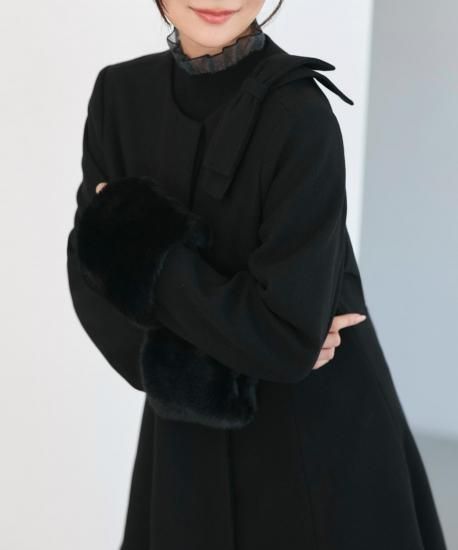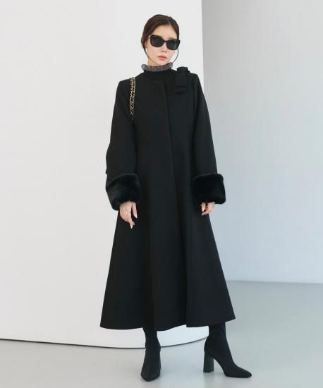 リュクスなシックエレガンスを体現するファーカフス・フレアコート