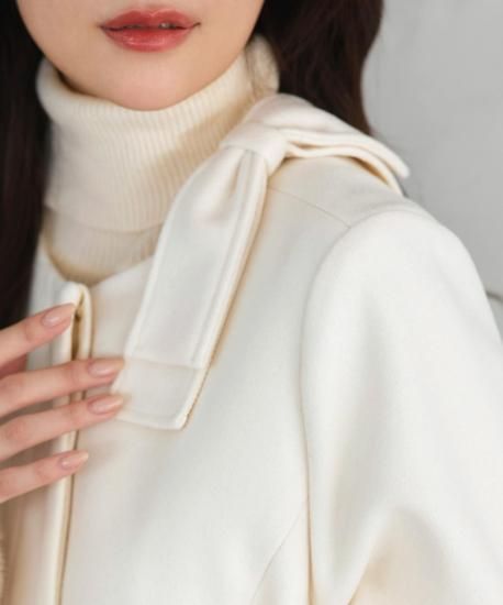 ノーカラーデザインで首まわりをすっきりとした印象に。