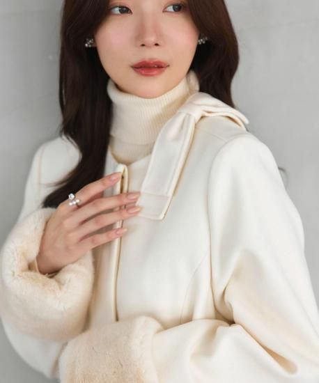 フェイクファーを袖口から覗かせてリュクスな印象に。