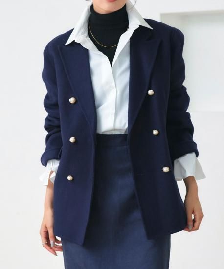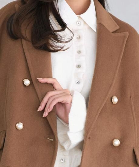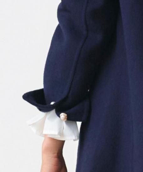 開き具と袖につけたパールの装飾ボタンがアクセントに。