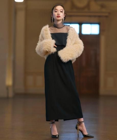 首元をすっきり演出してくれるノーカラーが様々なスタイルにフィット。