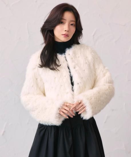 ◆伸縮性:なし ◆裏地:あり ◆開き具:前開き スナップ釦4set ◆カラー:ベージュ/ホワイト/ブラック/ペールピンク |