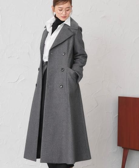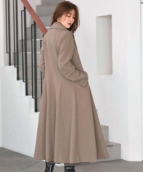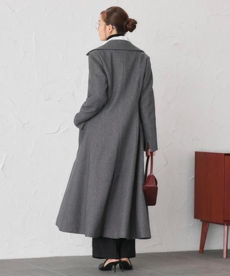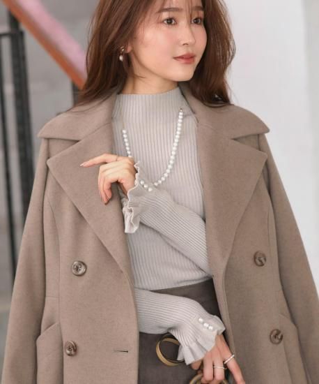 大きめのテーラードカラーで、顔周りがすっきりして見えます。