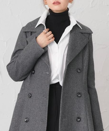 大きめのテーラードカラーで顔周りがすっきりして見えます。