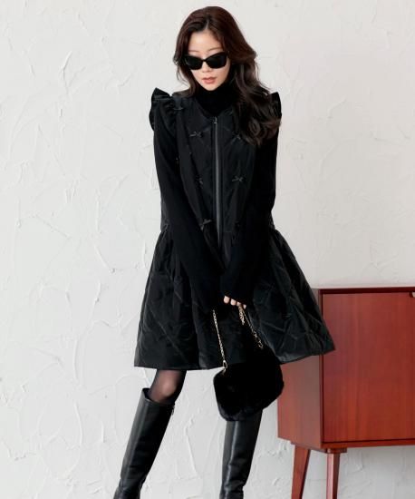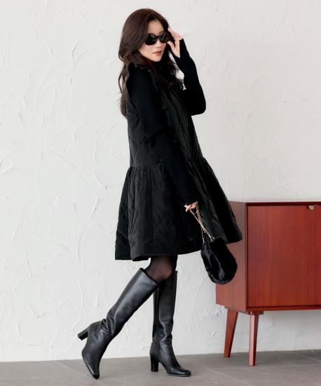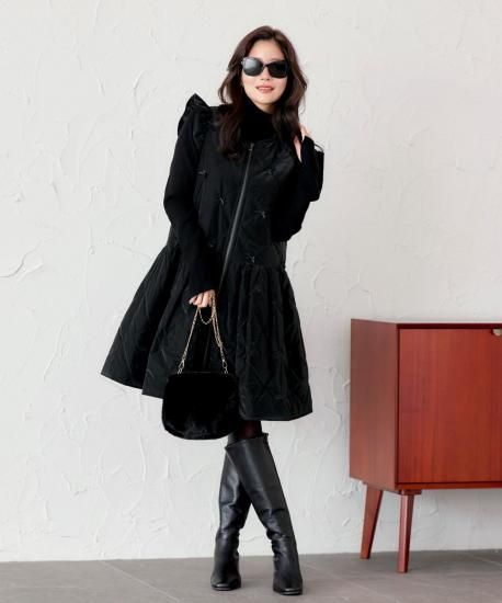 裾に広がるフレアラインが、ふんわりとしたシルエットを描き、可憐な雰囲気を演出。