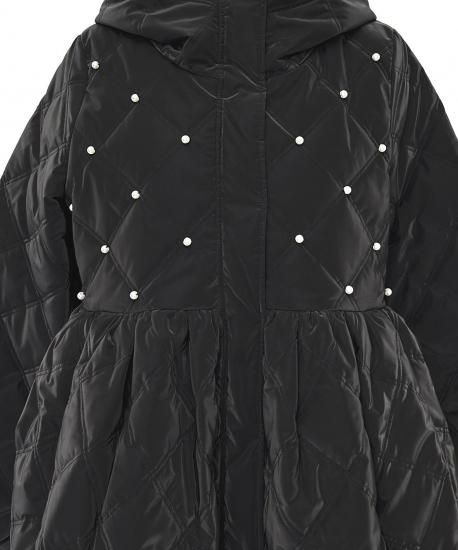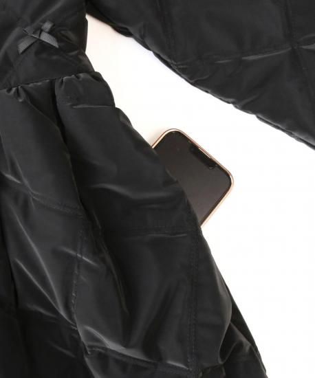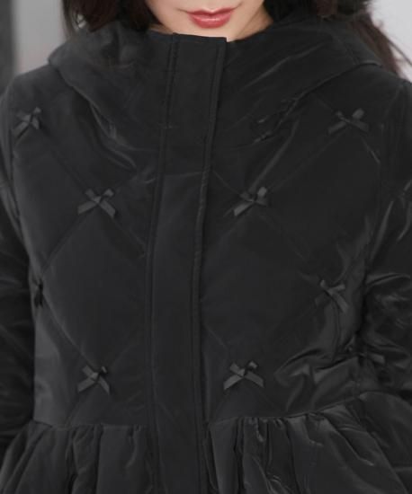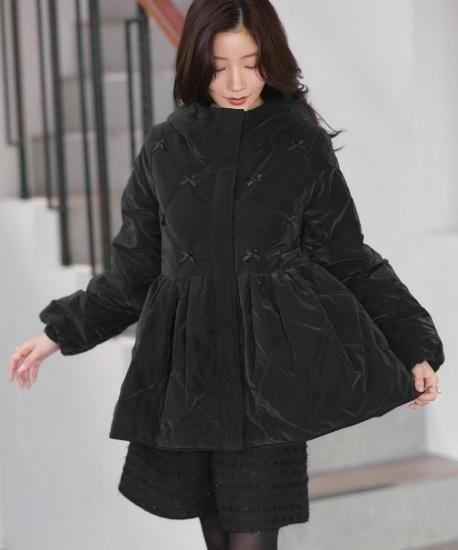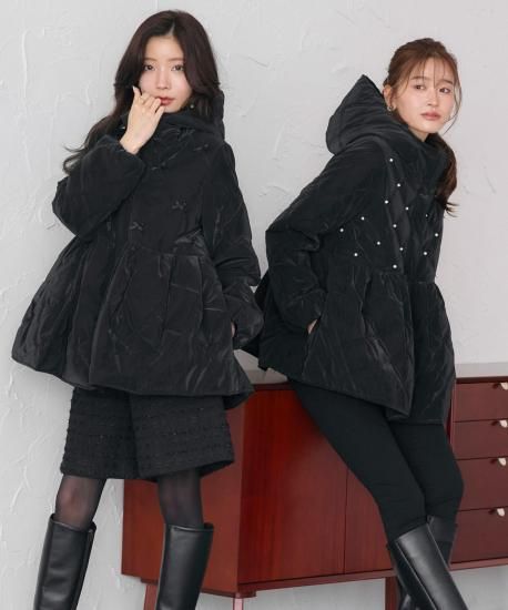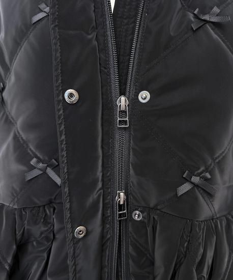 ◆伸縮性:なし ◆裏地:あり ◆開き具:前開きファスナー+ドット釦 6set ◆カラー:パール・ブラック/リボン・ブラック |