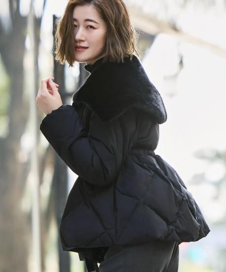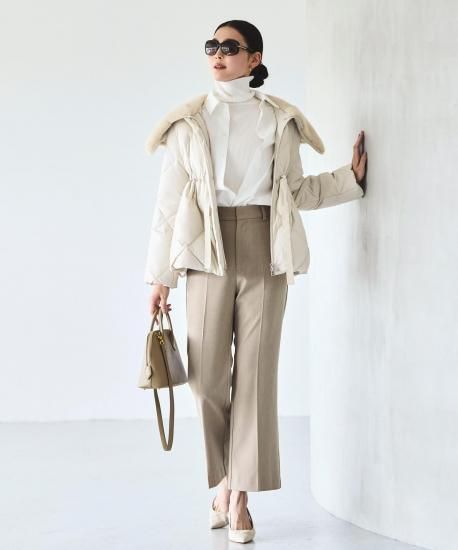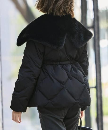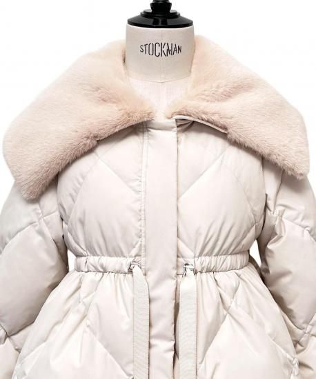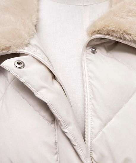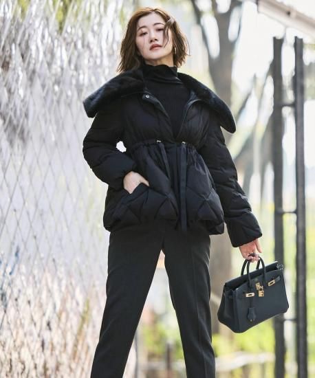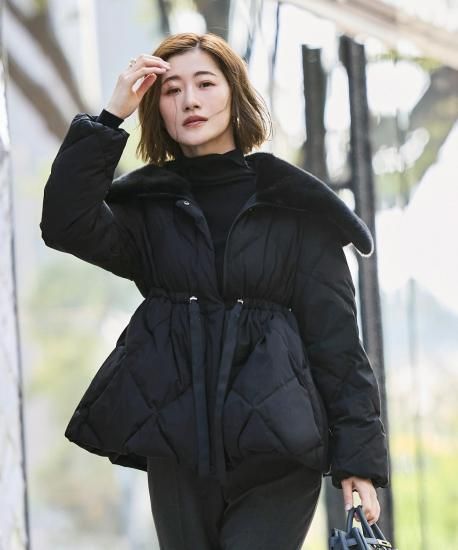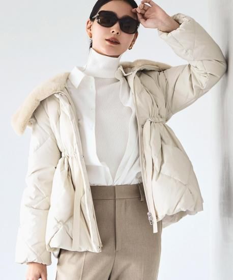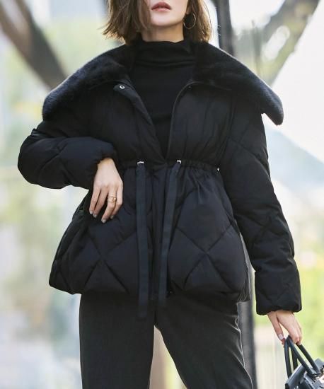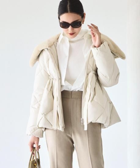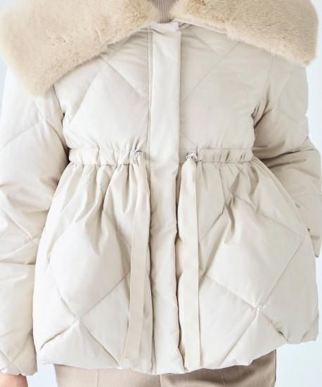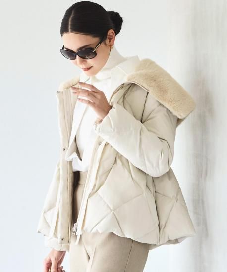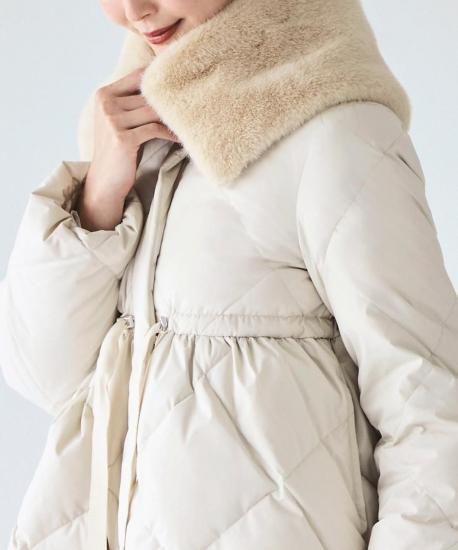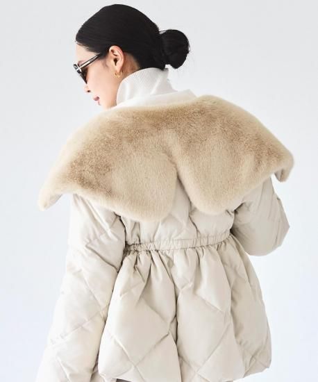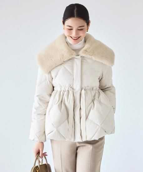 上質なフェイクファーが襟元を華やかに彩るリュクスなダウンコート。