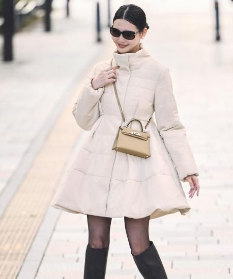 ウエストから広がるシルエットが女性らしさを引き立て、