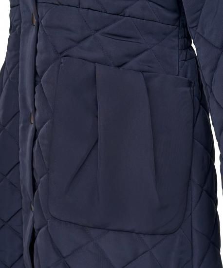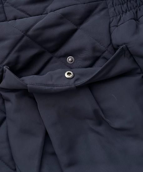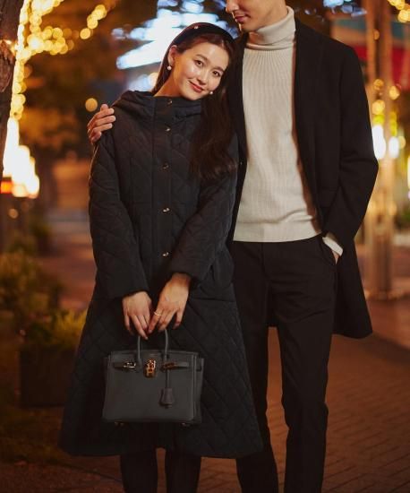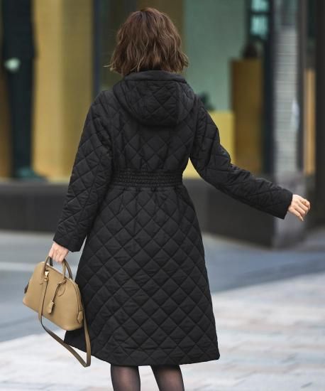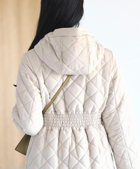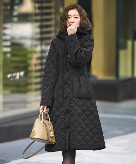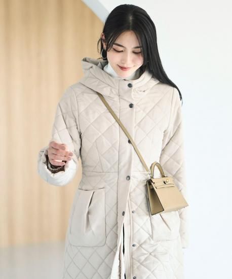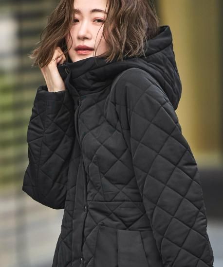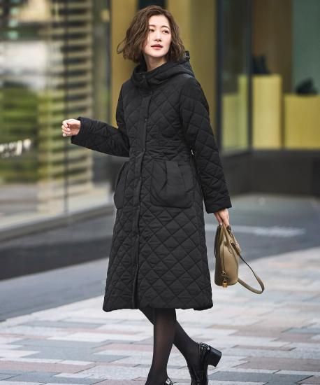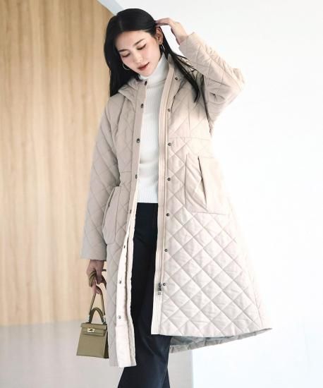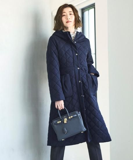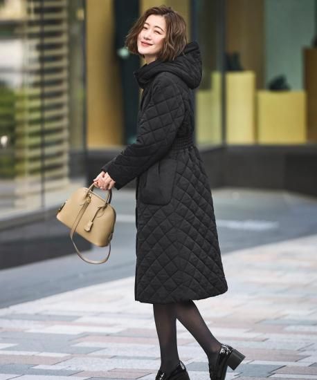 高級感のある素材で大人の品格漂う、フィットアンドフレアの上品なキルティングコート。
