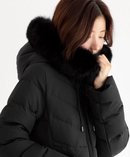 フォックスファーを贅沢にあしらい顔まわりを華やかに。