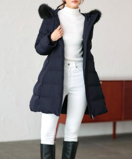 ◆伸縮性:なし ◆裏地:あり ◆開き具:前開きファスナー ◆付属品:フォックスファー(釦+ゴムループで取り外し可) ◆カラー:ブラック/ネイビー/アイボリー |