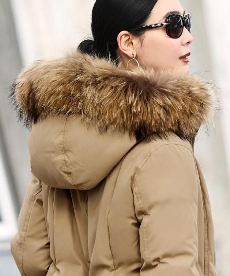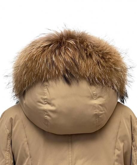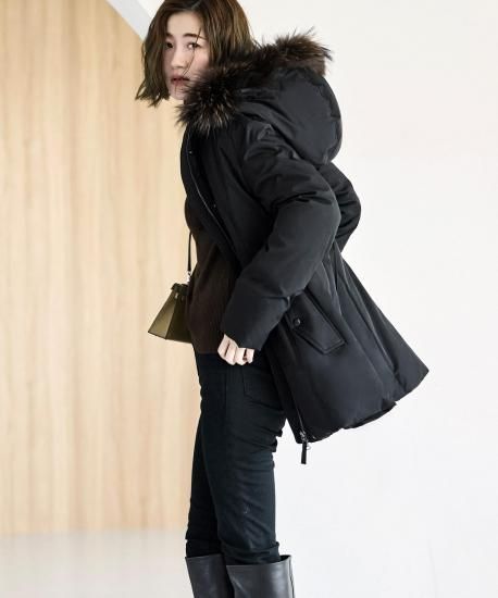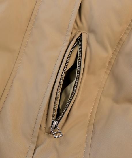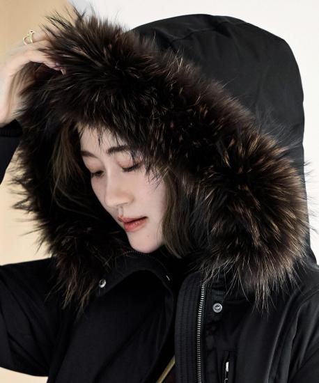 表地:ポリエステル 100% 裏地:ポリエステル 100% 詰物:ダウン 80% フェザー 20% ファー部分:タヌキ(チャイニーズラクーン) |